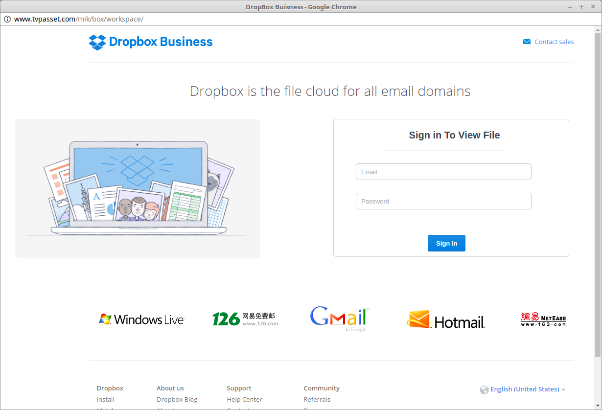 Looks like a pretty convincing Dropbox login doesn’t it? The only giveaway is the address bar – it shows a domain that’s NOT dropbox.com, which is the one thing these scam’s CAN’T imitate, so this should ALWAYS be your tip-off if you’re suspicious (and you should always be suspicious).